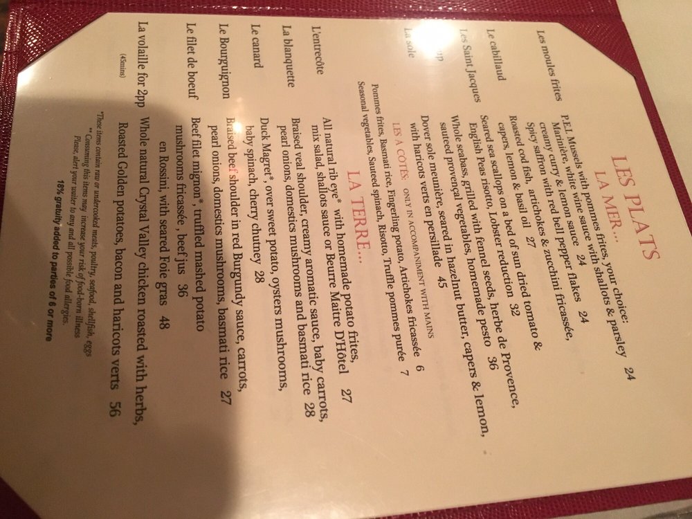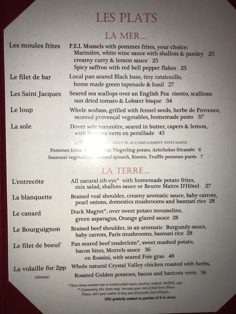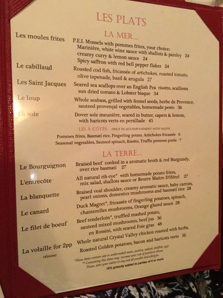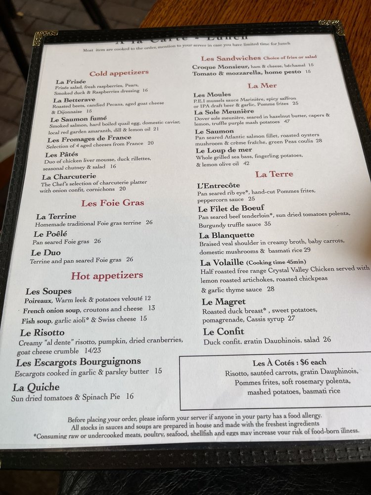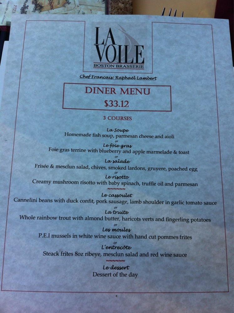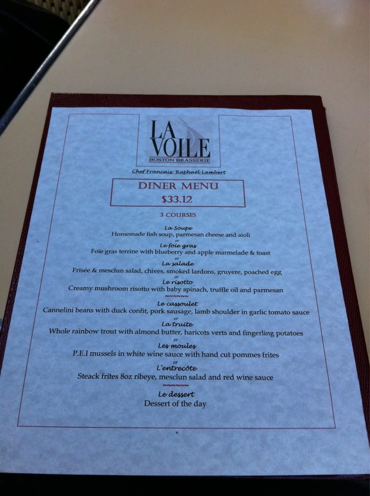 La Voile Menu